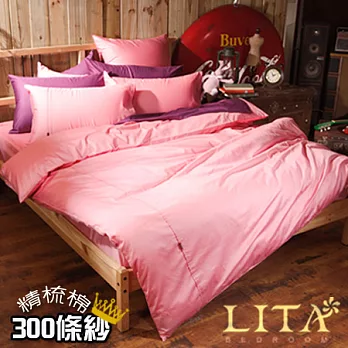 LITA麗塔(Magic Colors-胭脂粉)雙人四件式純棉兩用被床包組